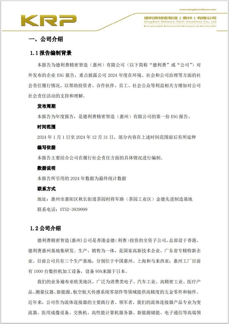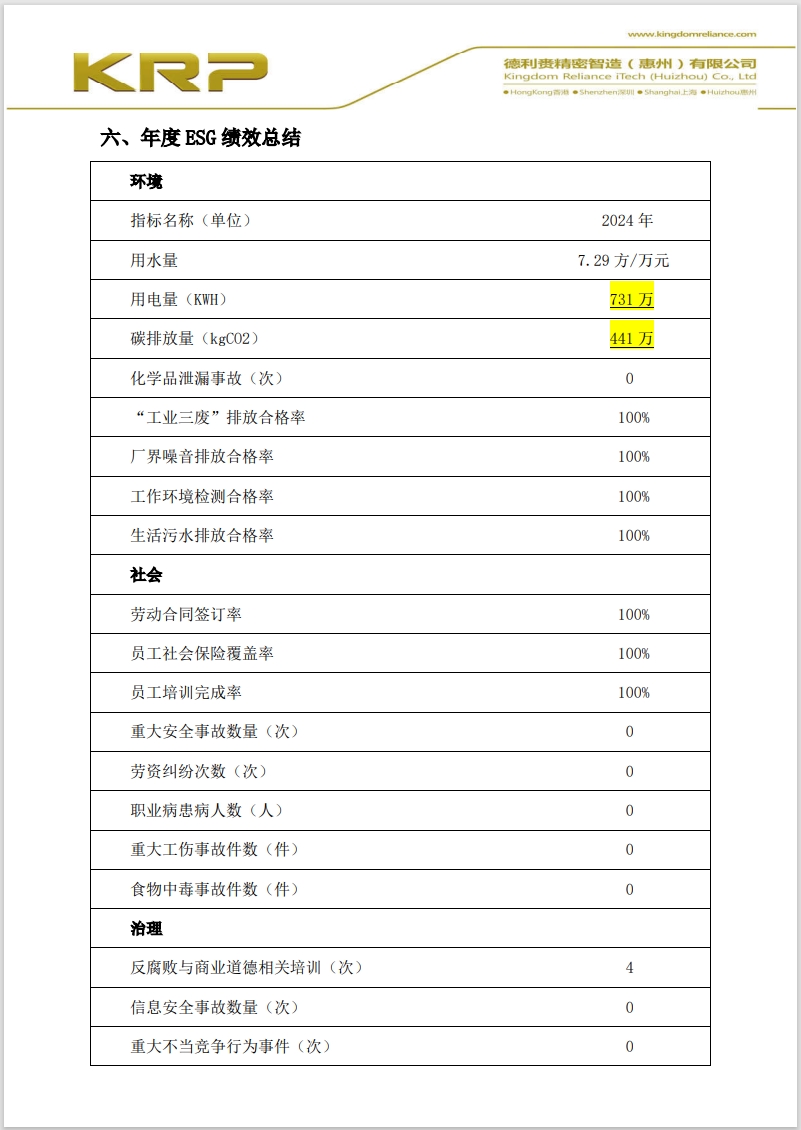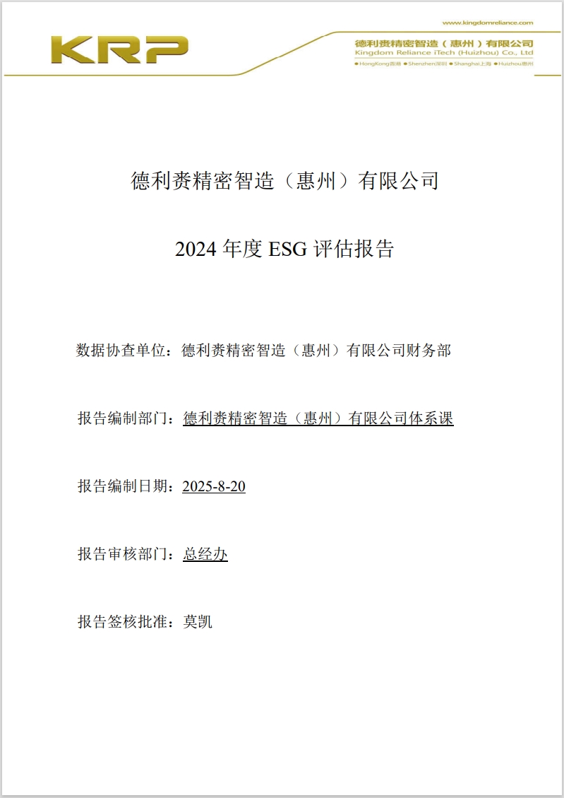 德利赉精密智造(惠州)有限公司2024年度ESG评估报告